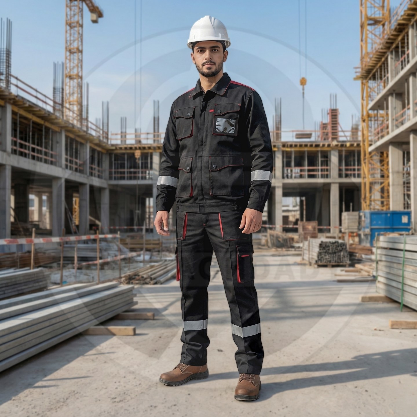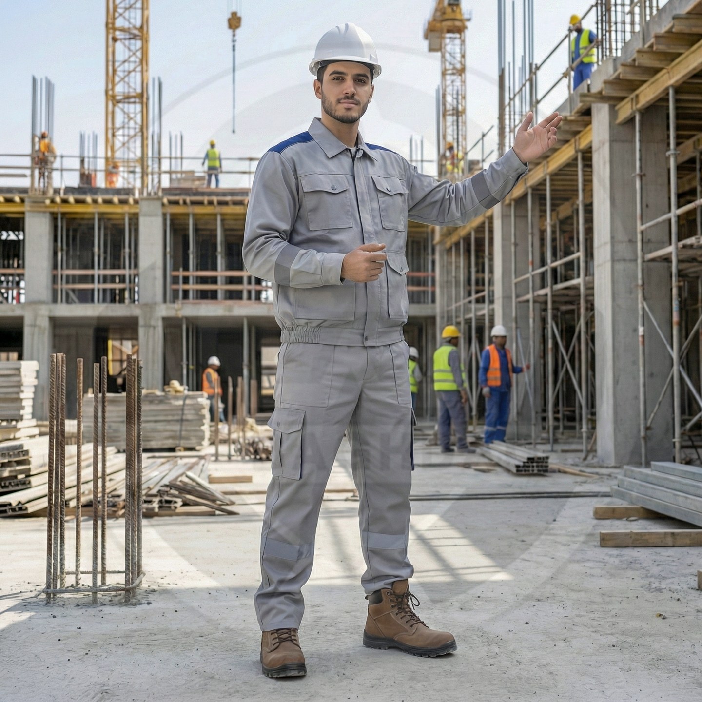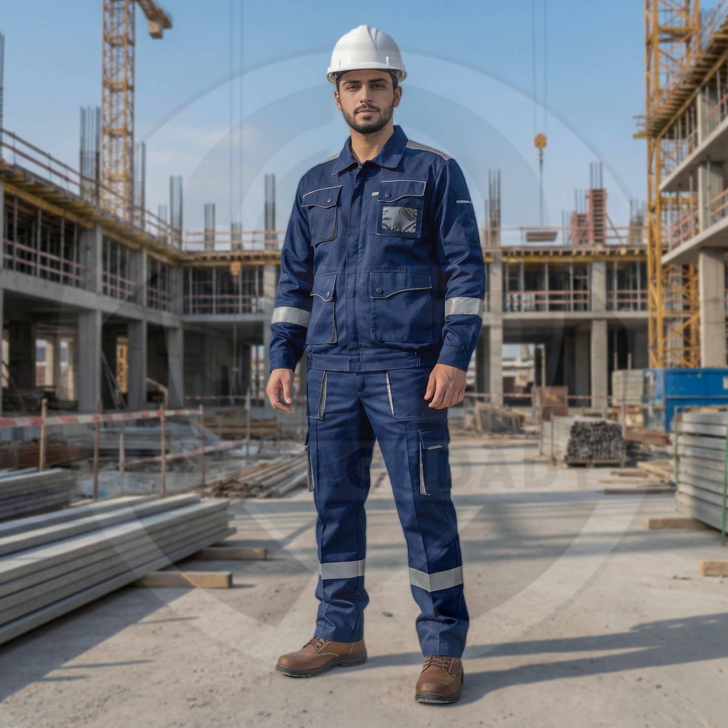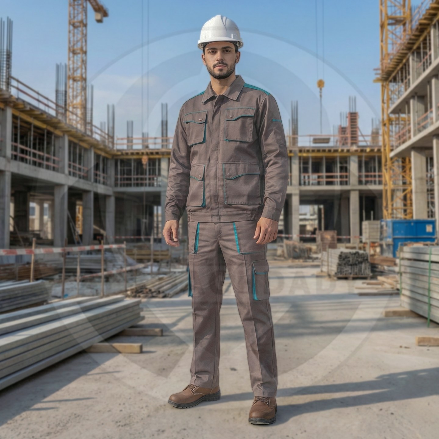 وصف المنتج : بدلة عمل قطعتين من شركة سن واي ذات تصميم أنيق وجذاب وخامة قطنية صيفية ممتازة - تحوي على 9 جيوب خارجية