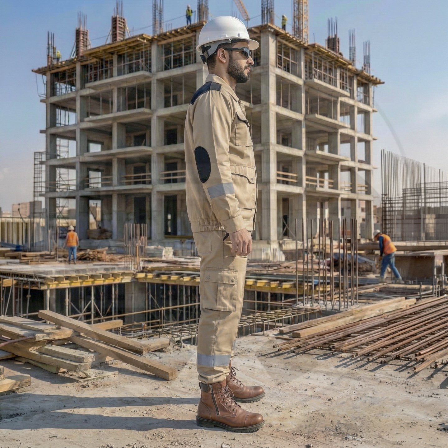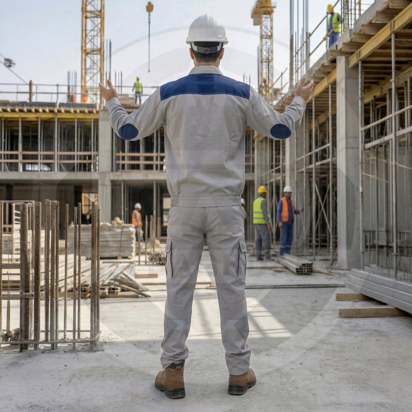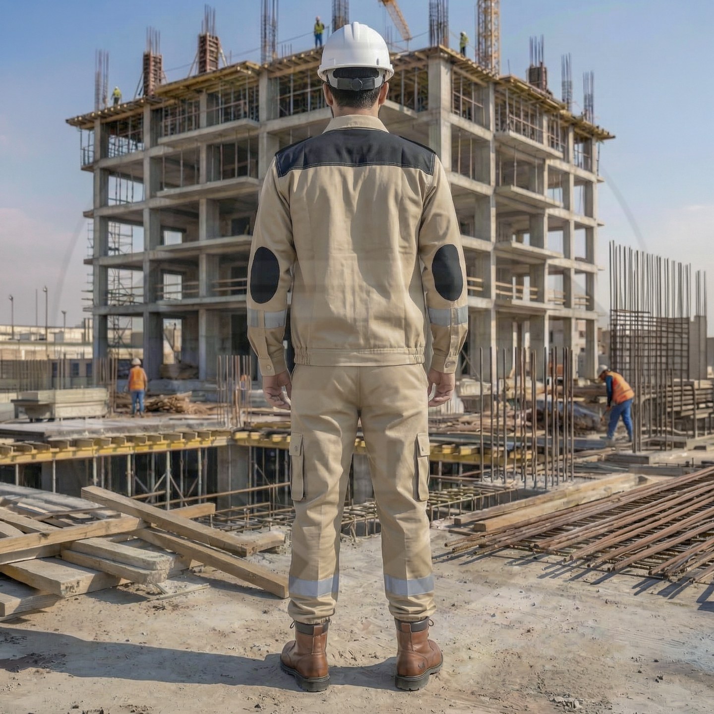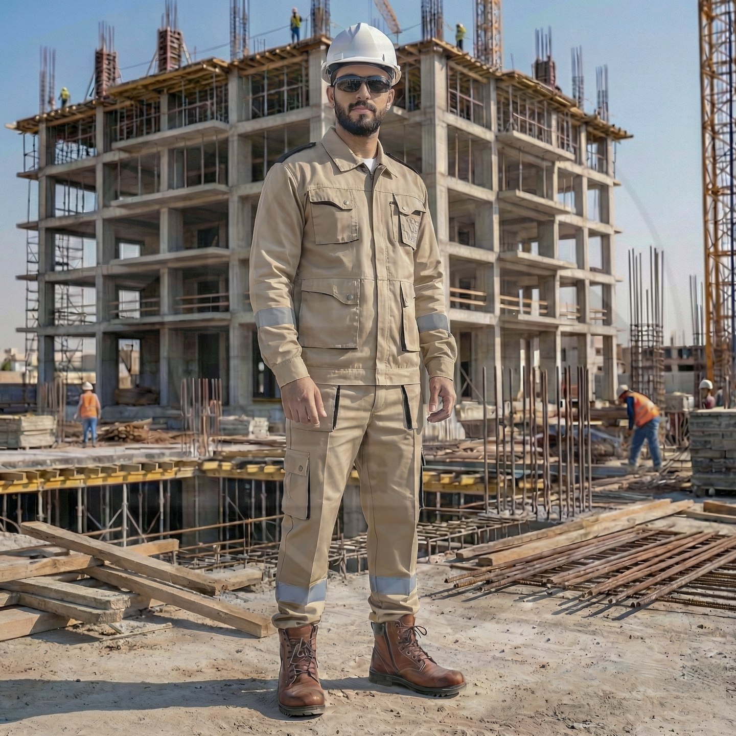 وصف المنتج : بدلة عمل قطعتين من شركة سن واي ذات تصميم أنيق وجذاب وخامة قطنية صيفية ممتازة - تحوي على 9 جيوب خارجية