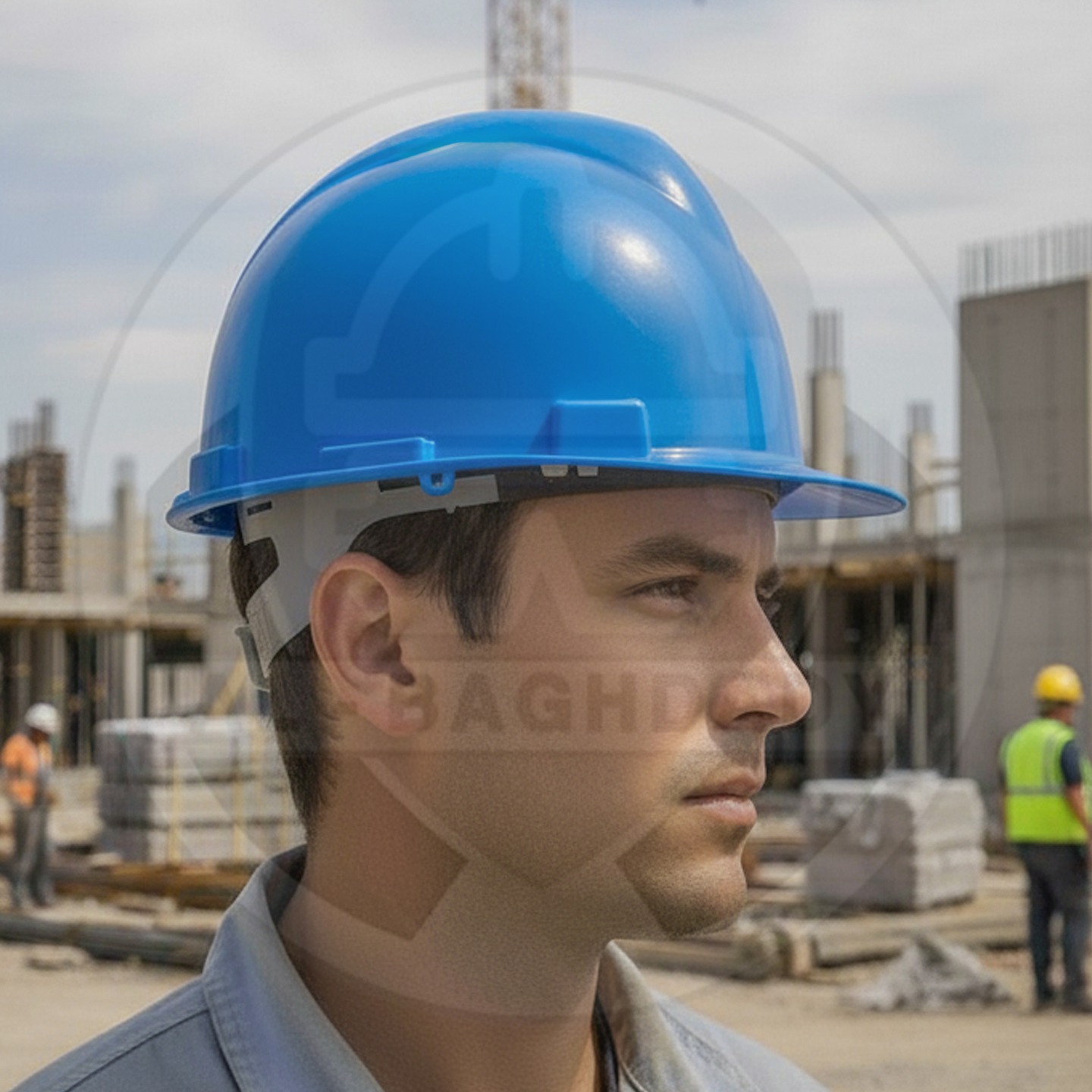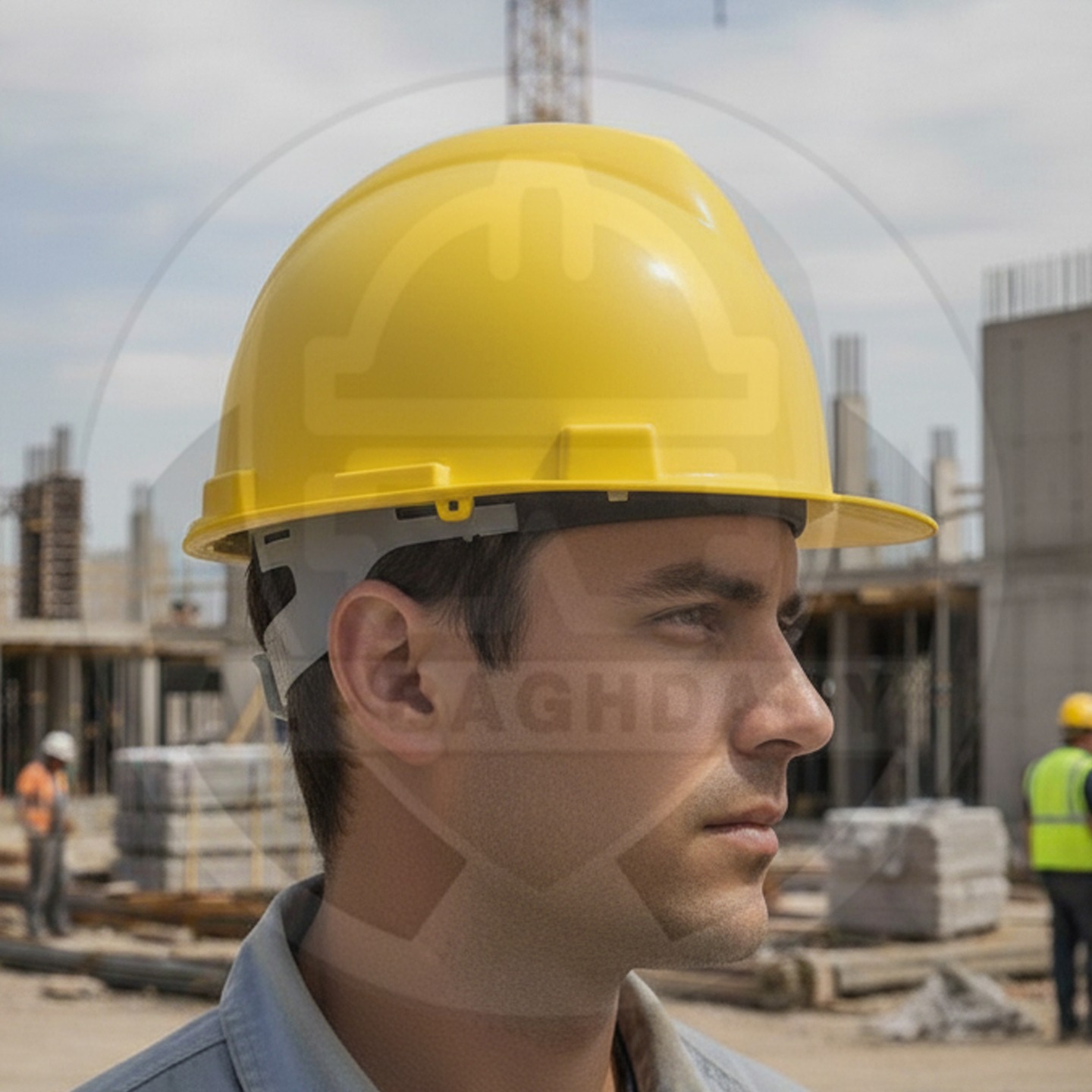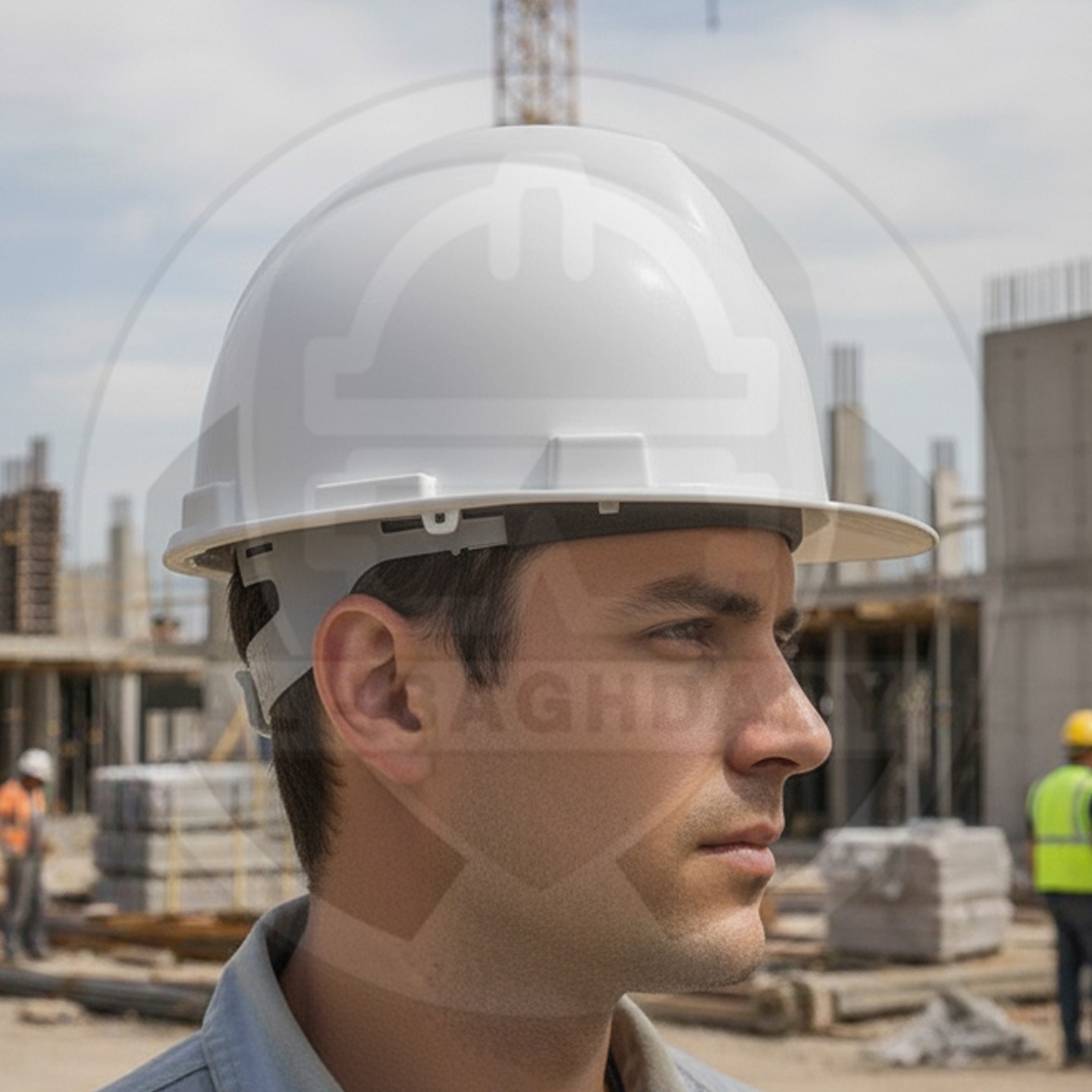 وصف المنتج : خوذة سلامة عادية من شركة كيو جيري مزودة بأخاديد رأس جيدة وحزام تثبيت حول الحنك