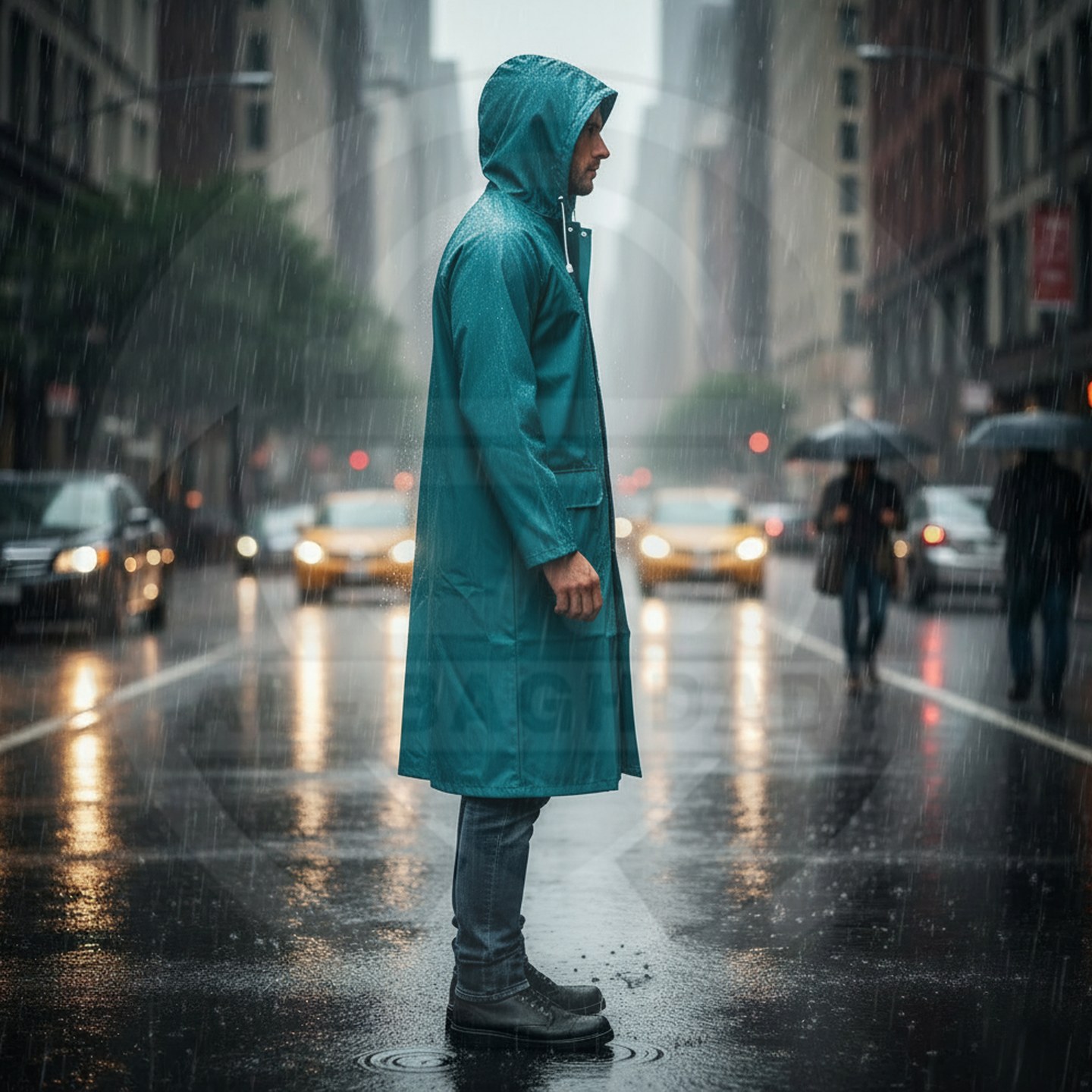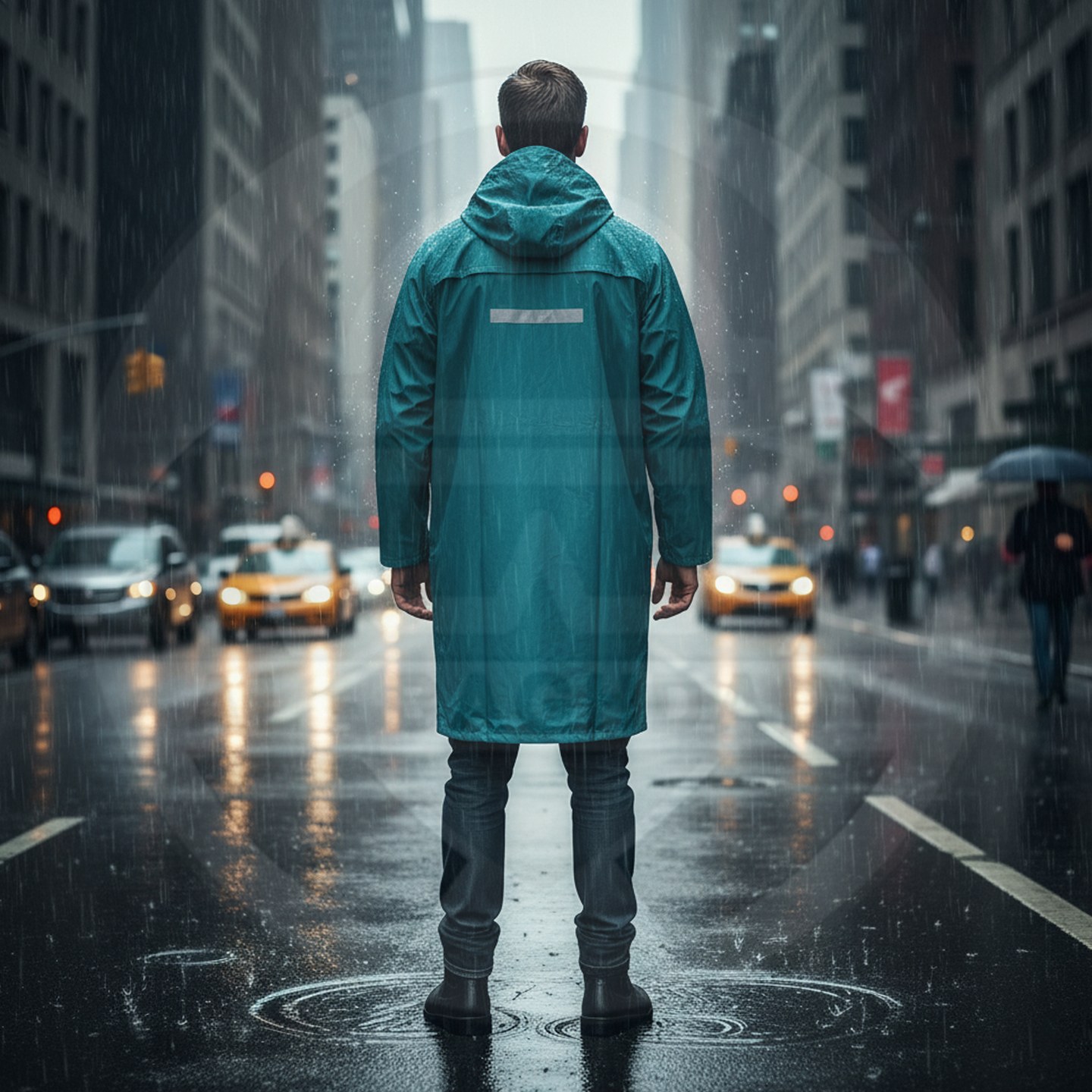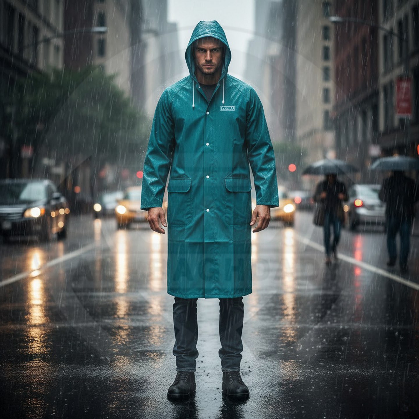 وصف المنتج : معطف مطري قطعة واحدة من شركة توتال مصنوع من مادة الـ PVC الثقيل المقاوم للامطار والبلل يحتوي على جيبين خارجيين