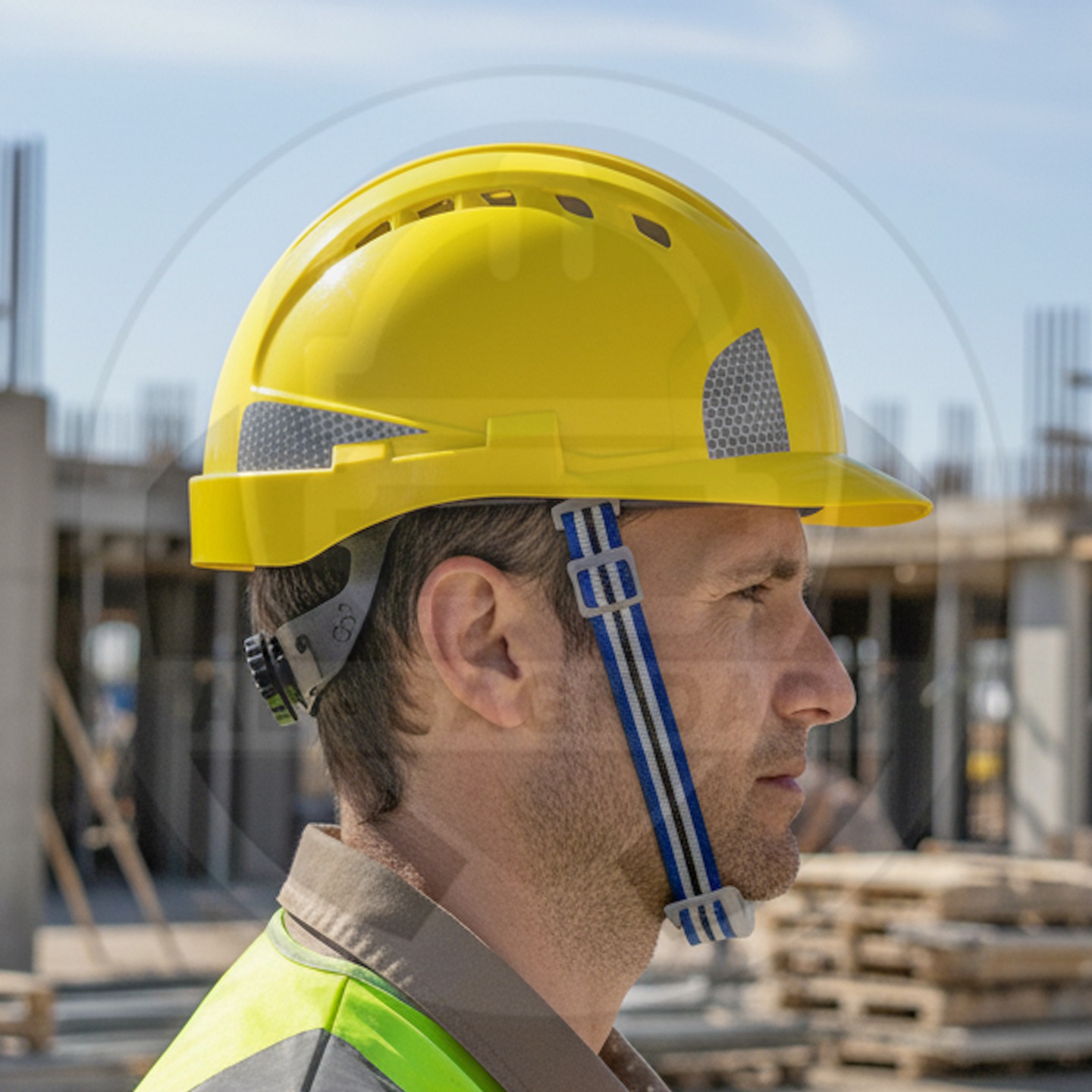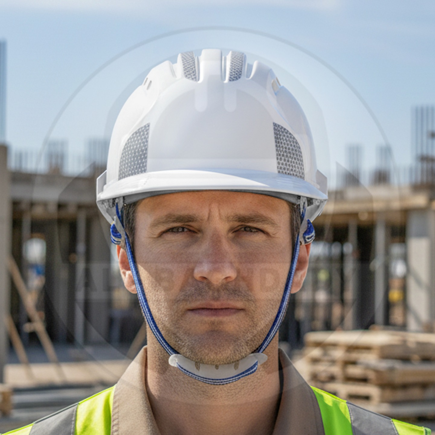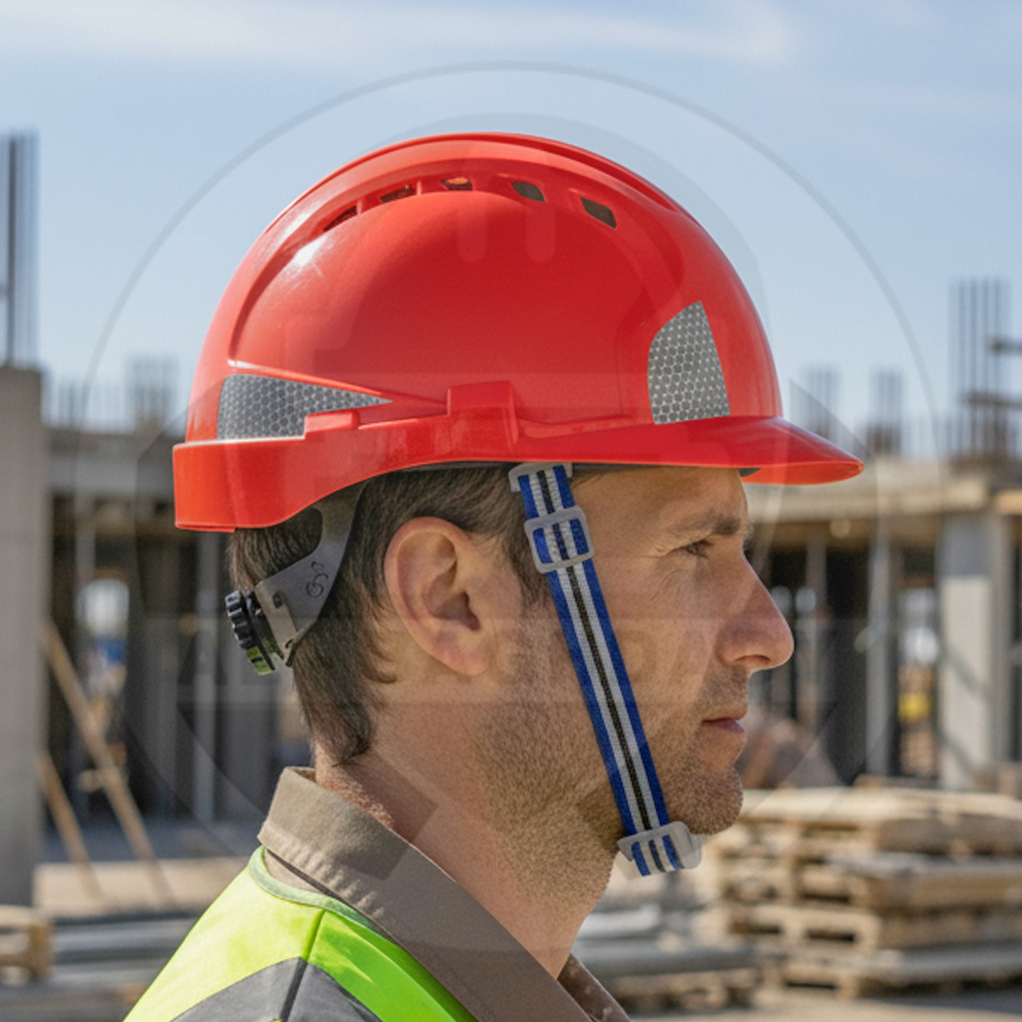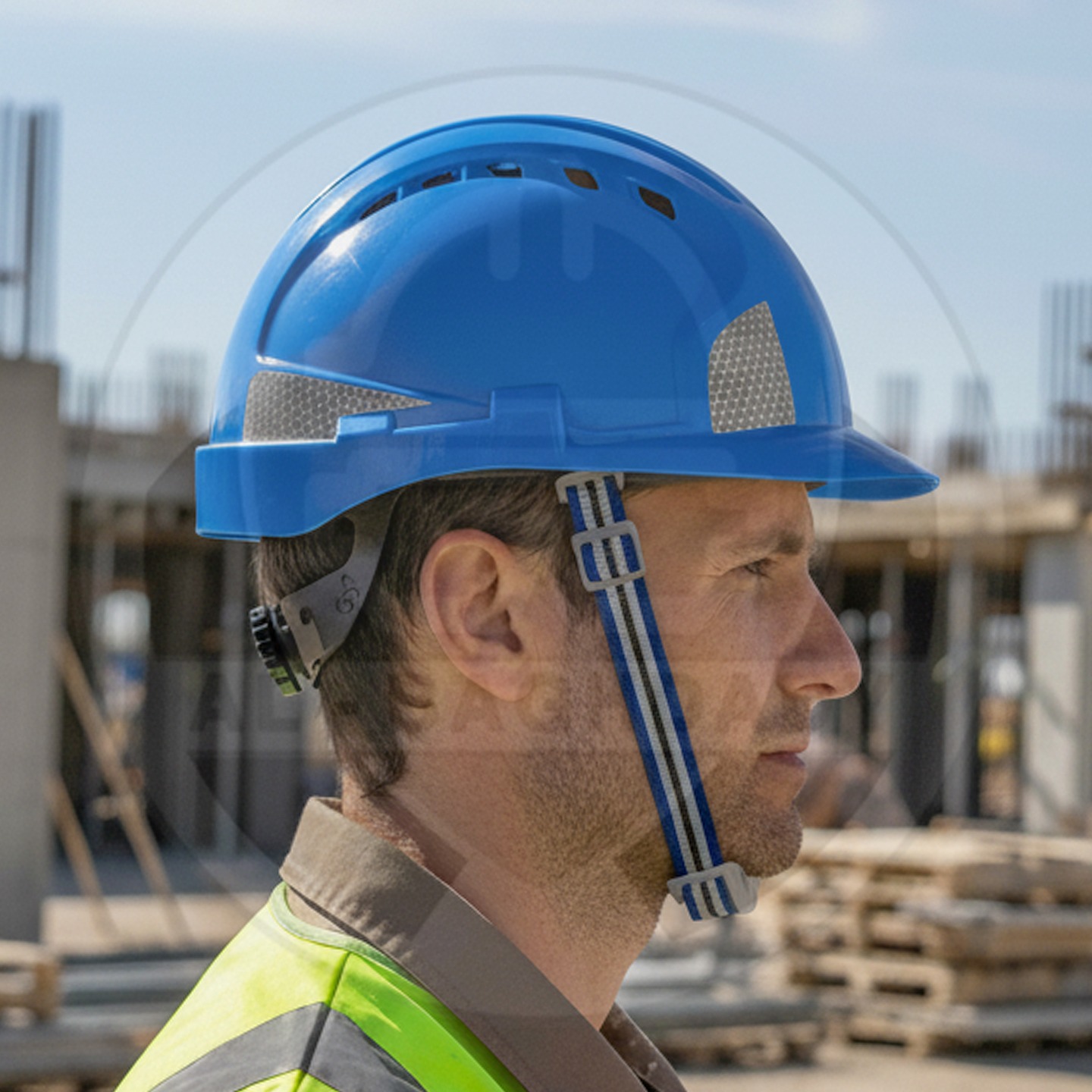 وصف المنتج : خوذة سلامة ممتازة من شركة SW مزودة بأخاديد رأس مريحة وحزام تثبيت حول الحنك مع ملصقات عاكسة للسلامة