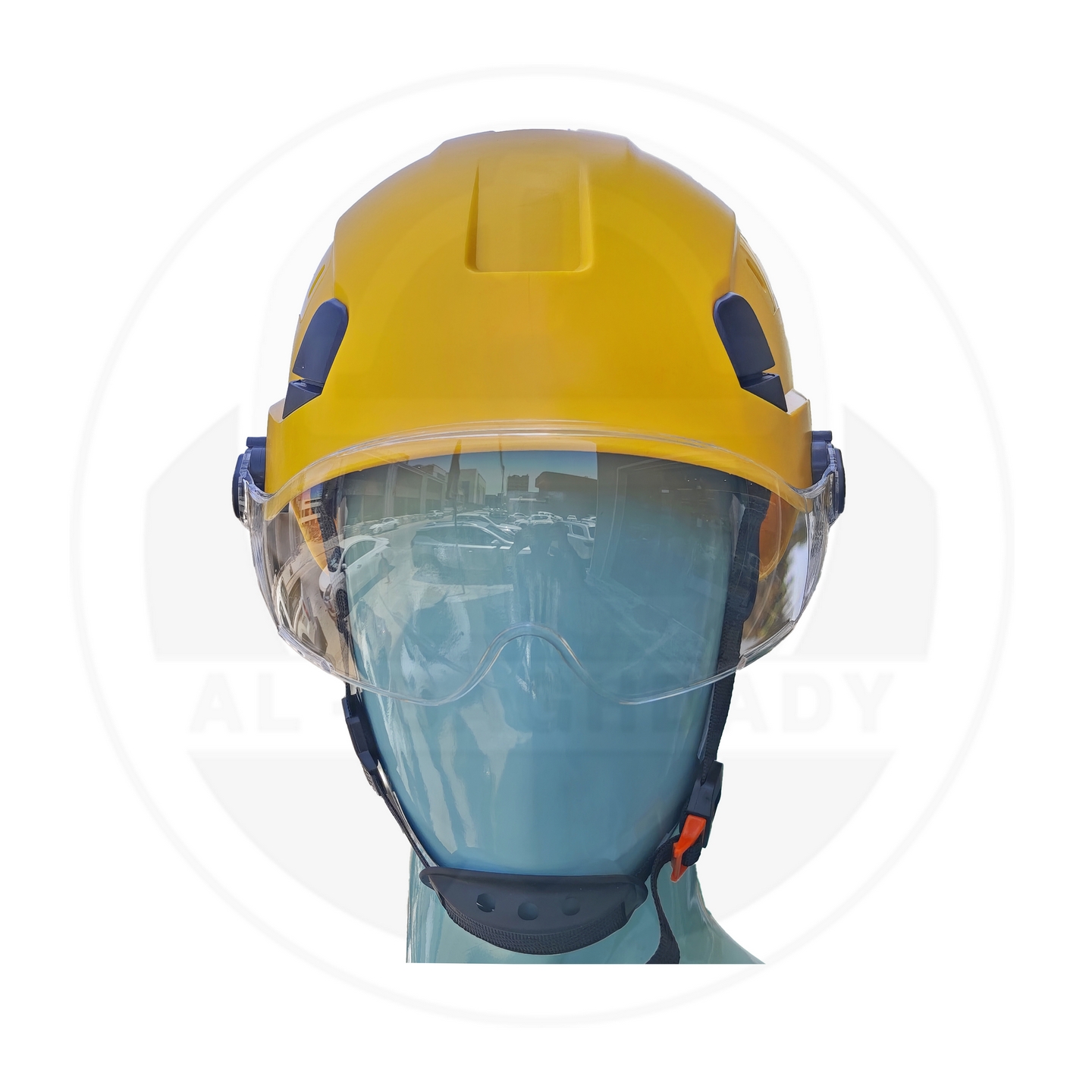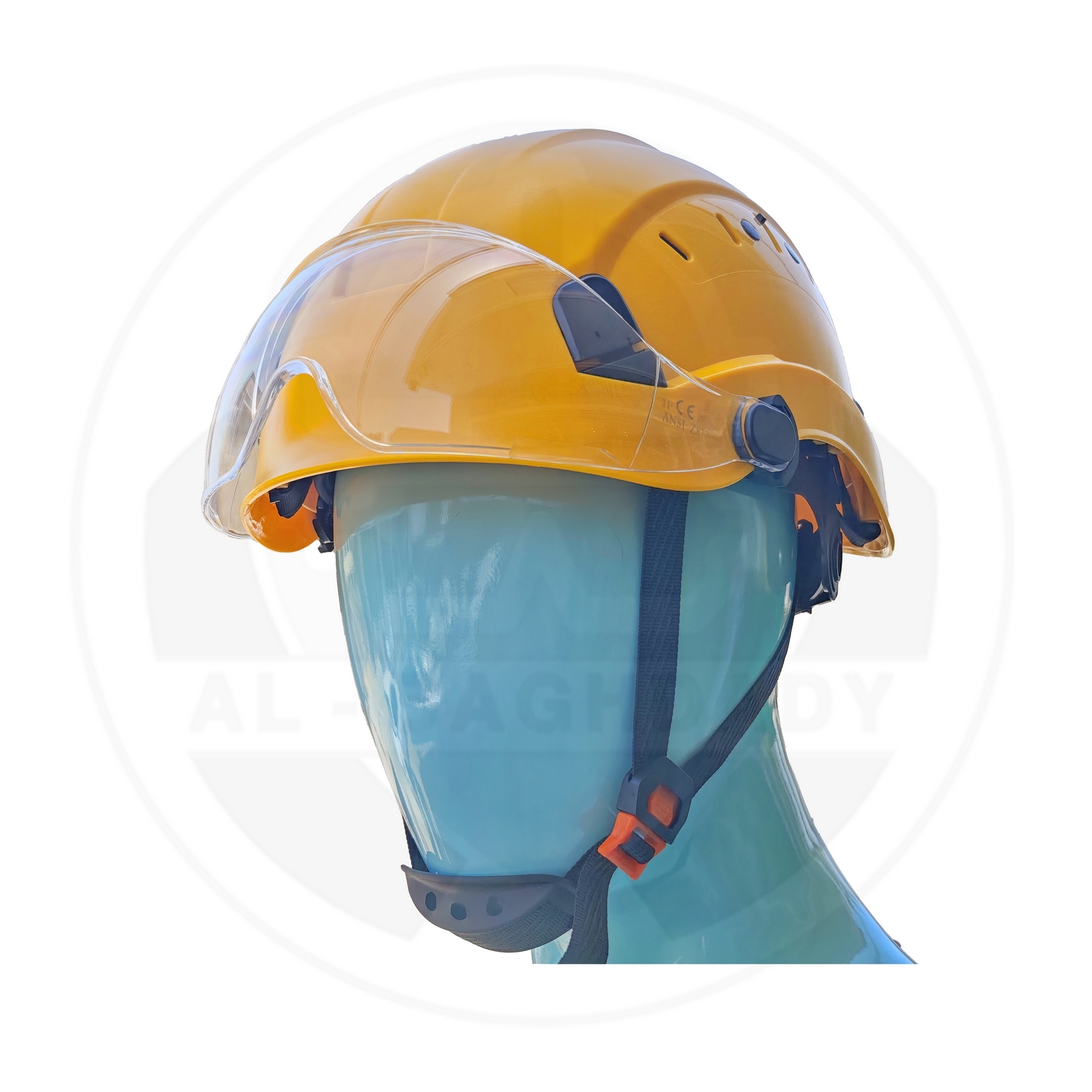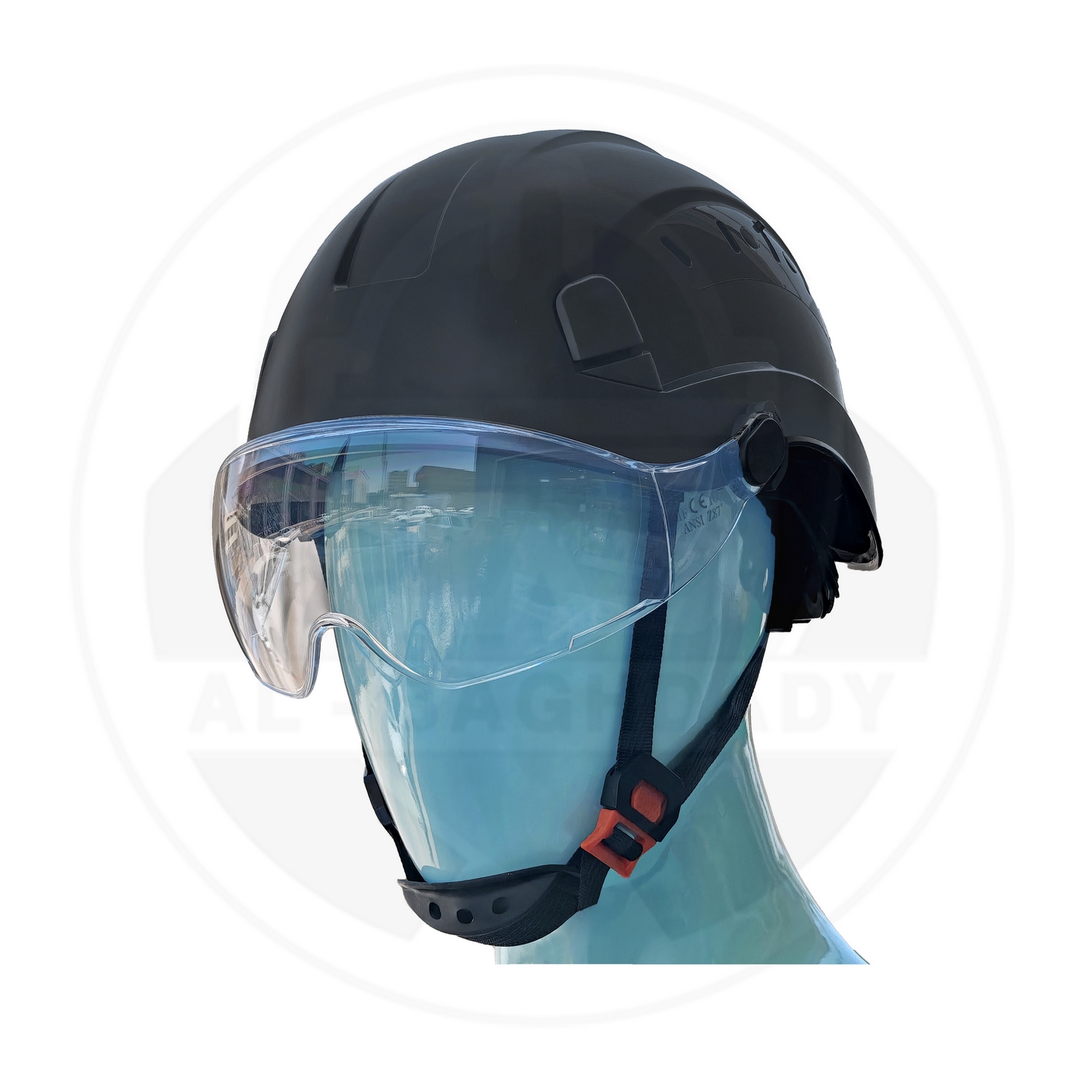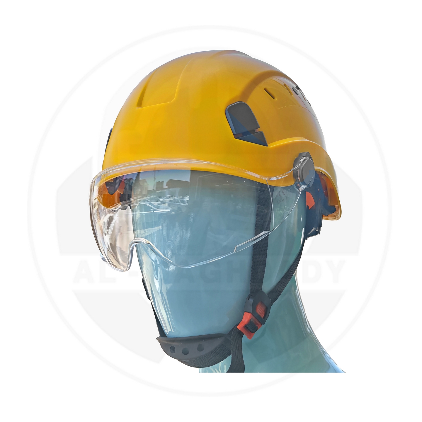 وصف المنتج : خوذة سلامة ممتازة من شركة SW ذات جودة ومتانة عالية مزودة بأخاديد رأس مريحة وحزام تثبيت الحنك وفتحات تهوية قابل للغلق والفتح بالاضافة الى واقي وجه شفاف