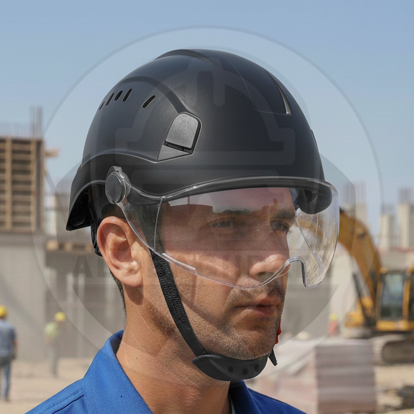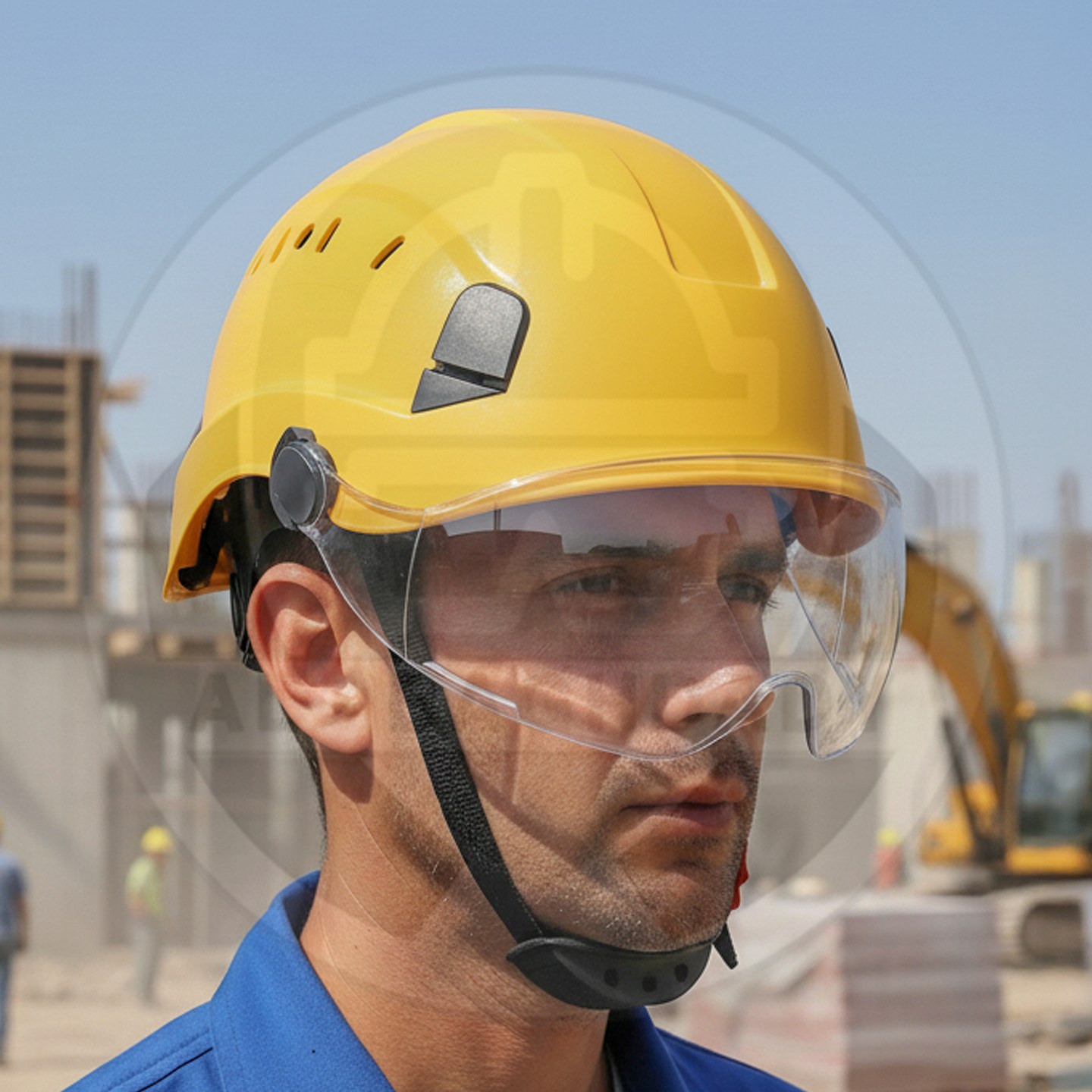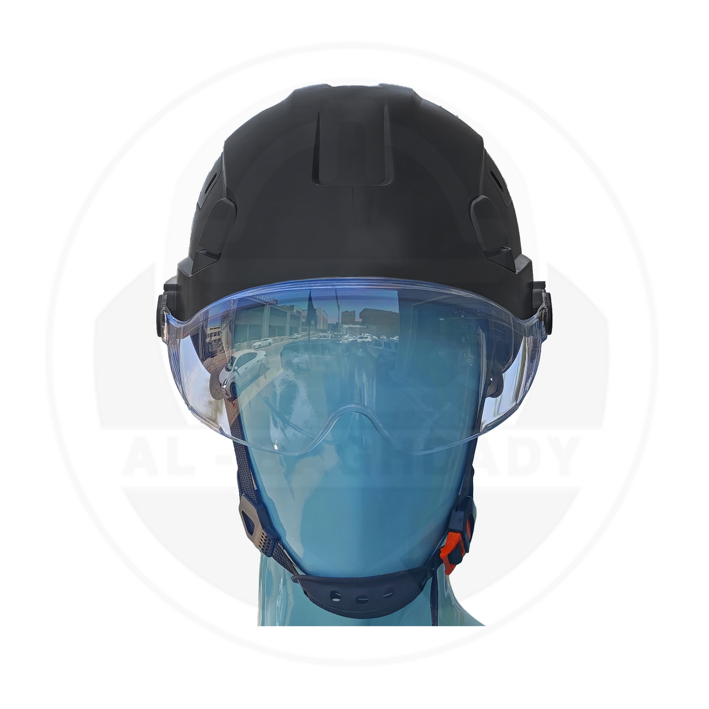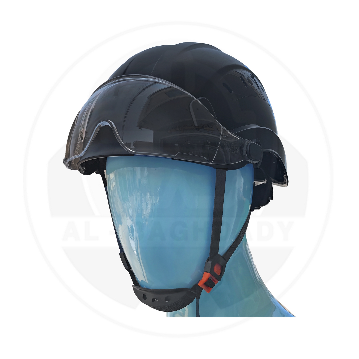 وصف المنتج : خوذة سلامة ممتازة من شركة SW ذات جودة ومتانة عالية مزودة بأخاديد رأس مريحة وحزام تثبيت الحنك وفتحات تهوية قابل للغلق والفتح بالاضافة الى واقي وجه شفاف