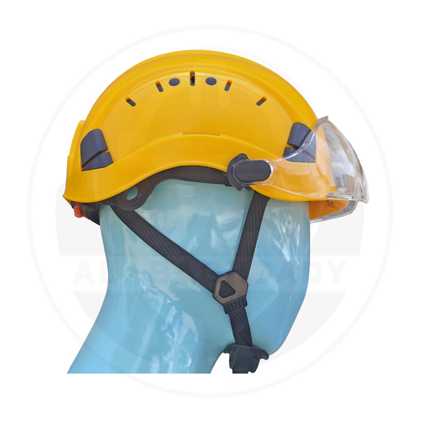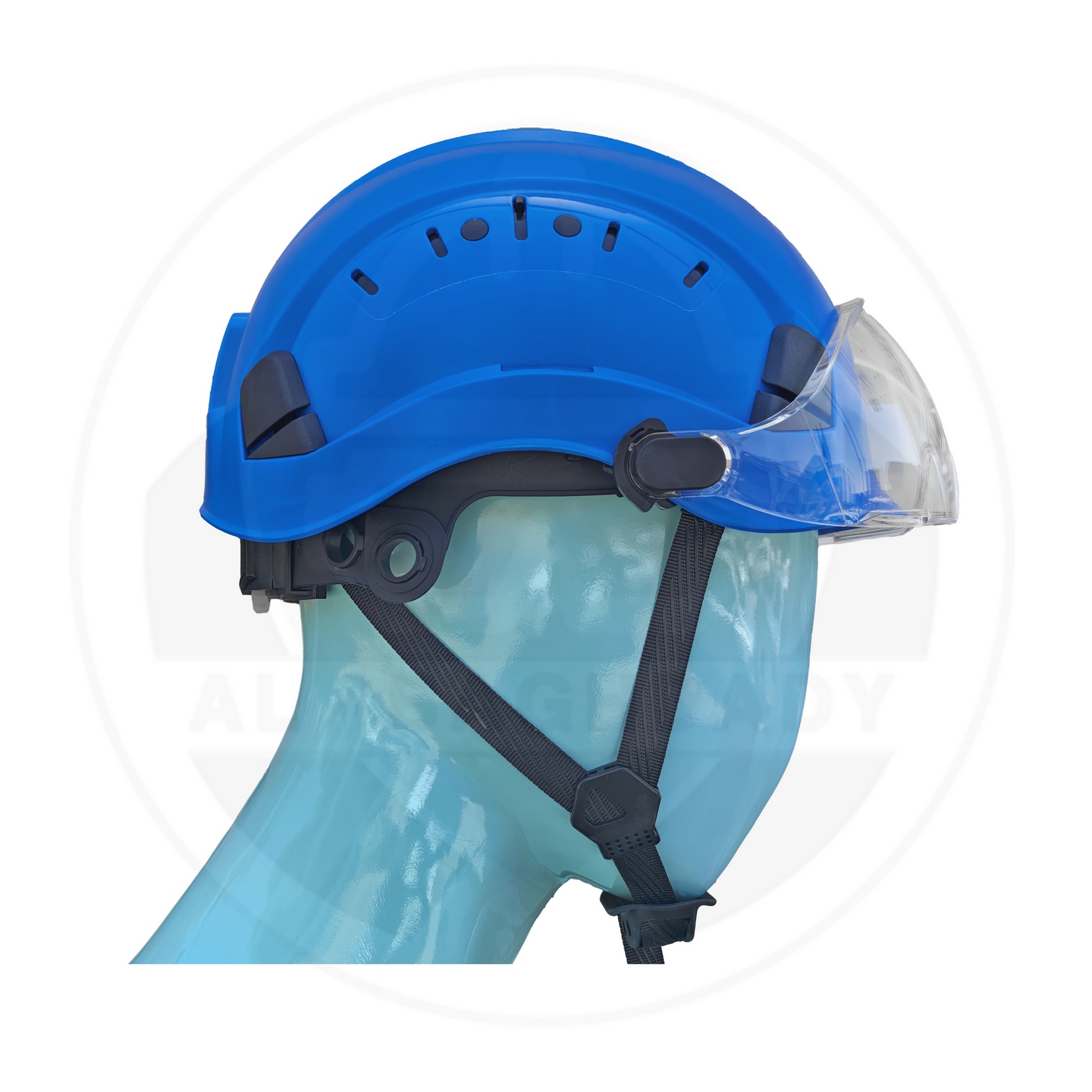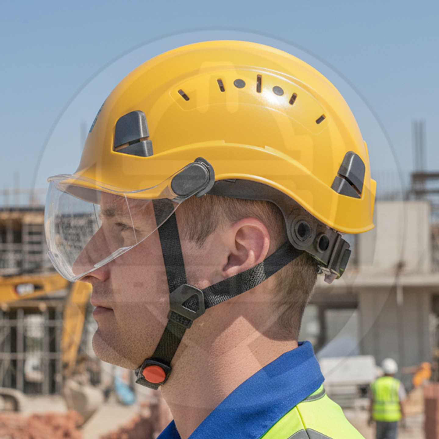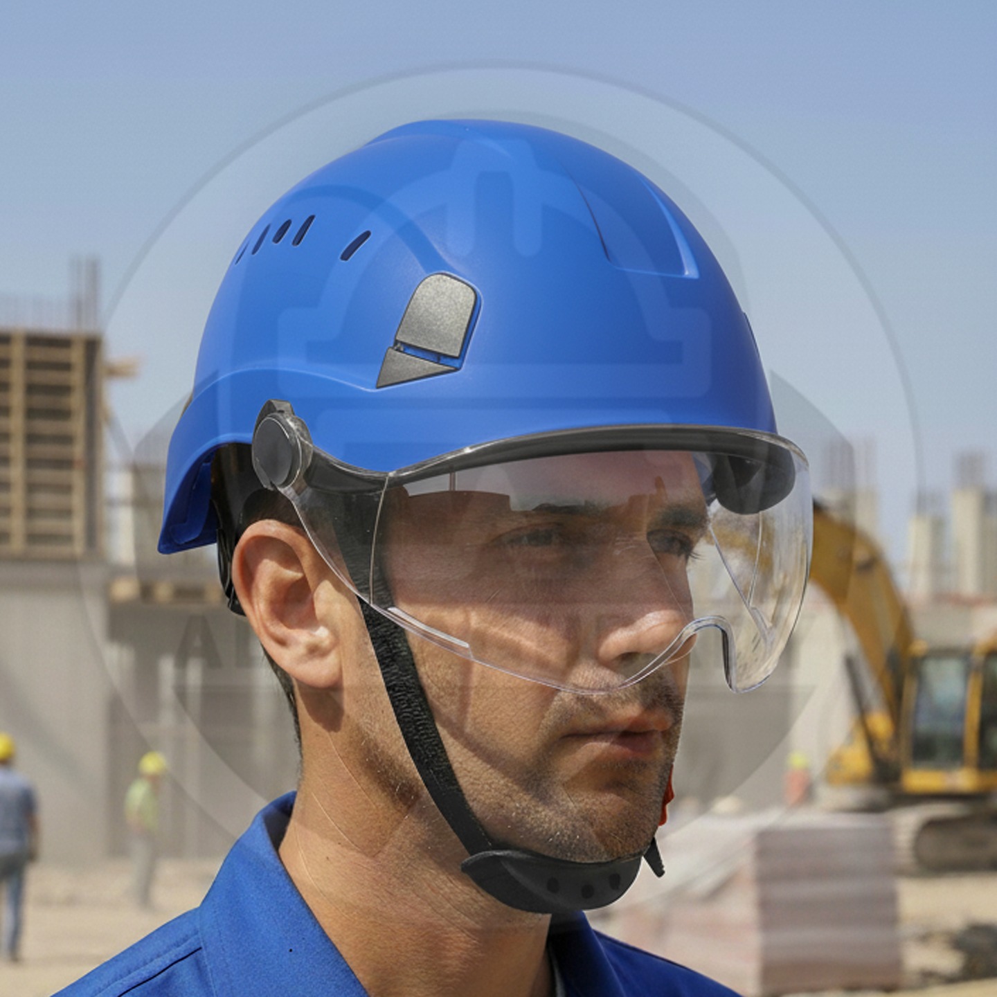 وصف المنتج : خوذة سلامة ممتازة من شركة SW ذات جودة ومتانة عالية مزودة بأخاديد رأس مريحة وحزام تثبيت الحنك وفتحات تهوية قابل للغلق والفتح بالاضافة الى واقي وجه شفاف