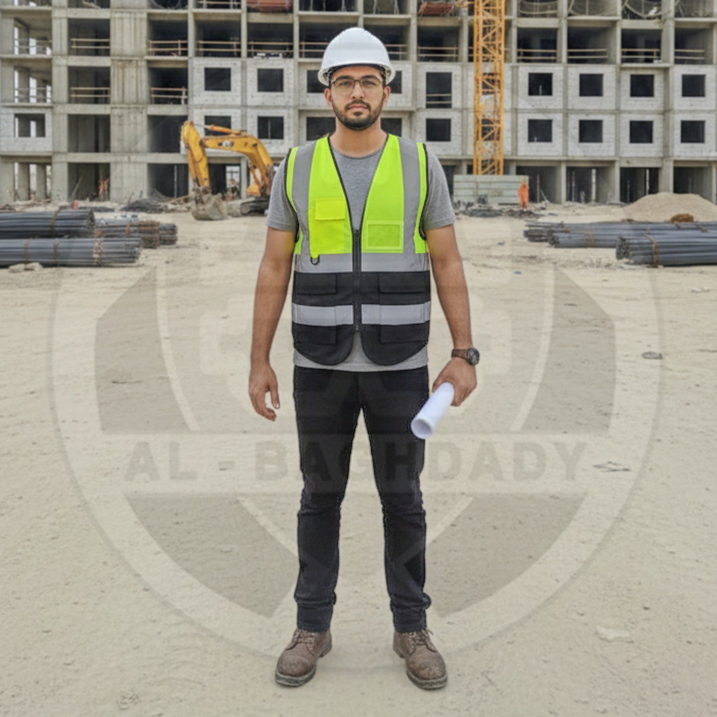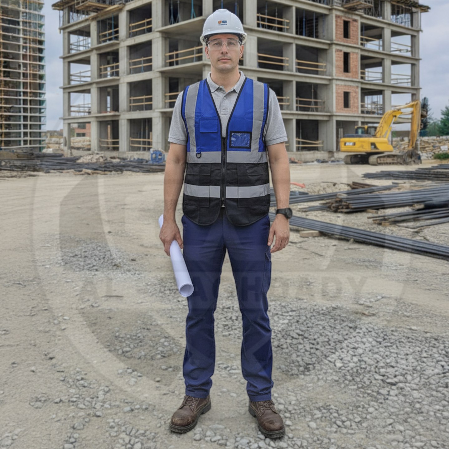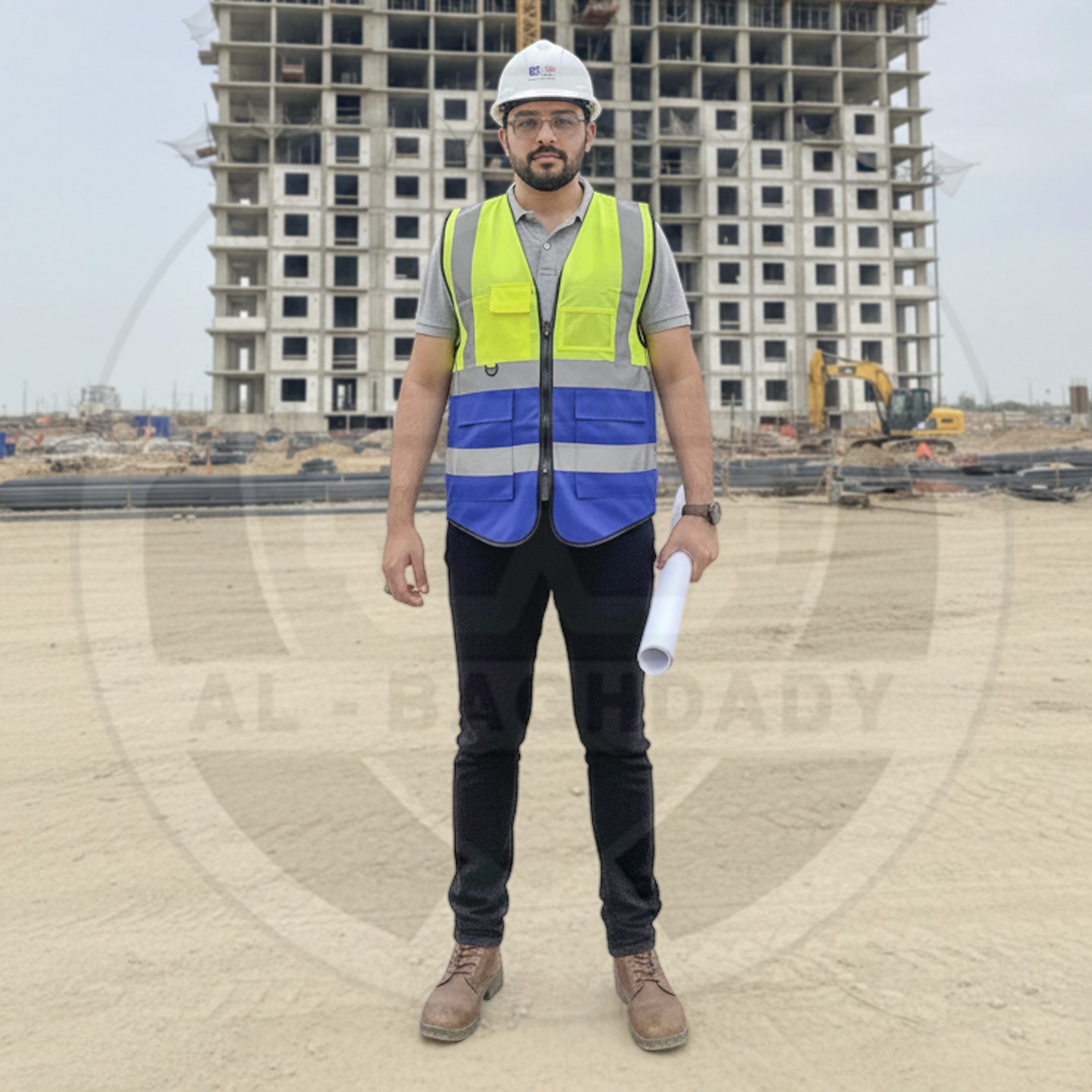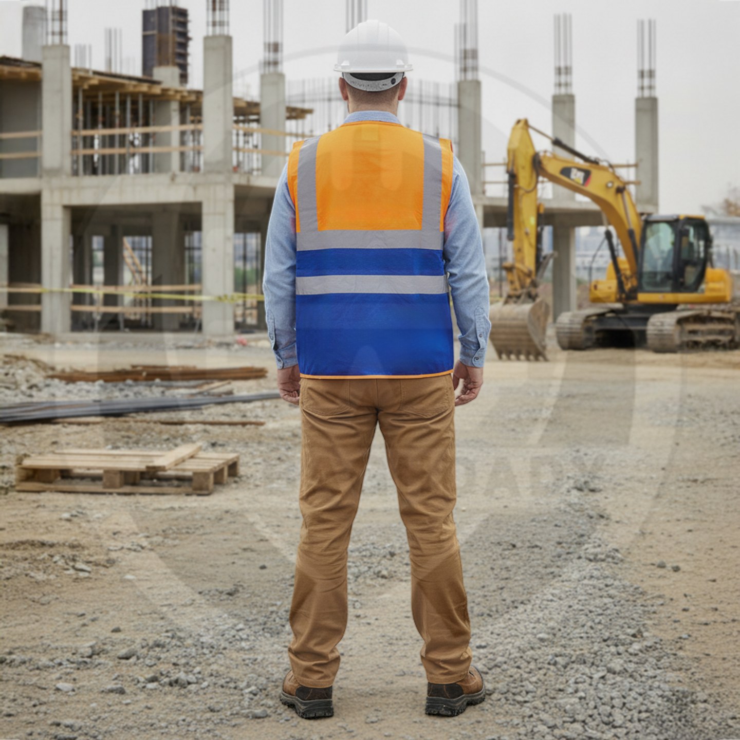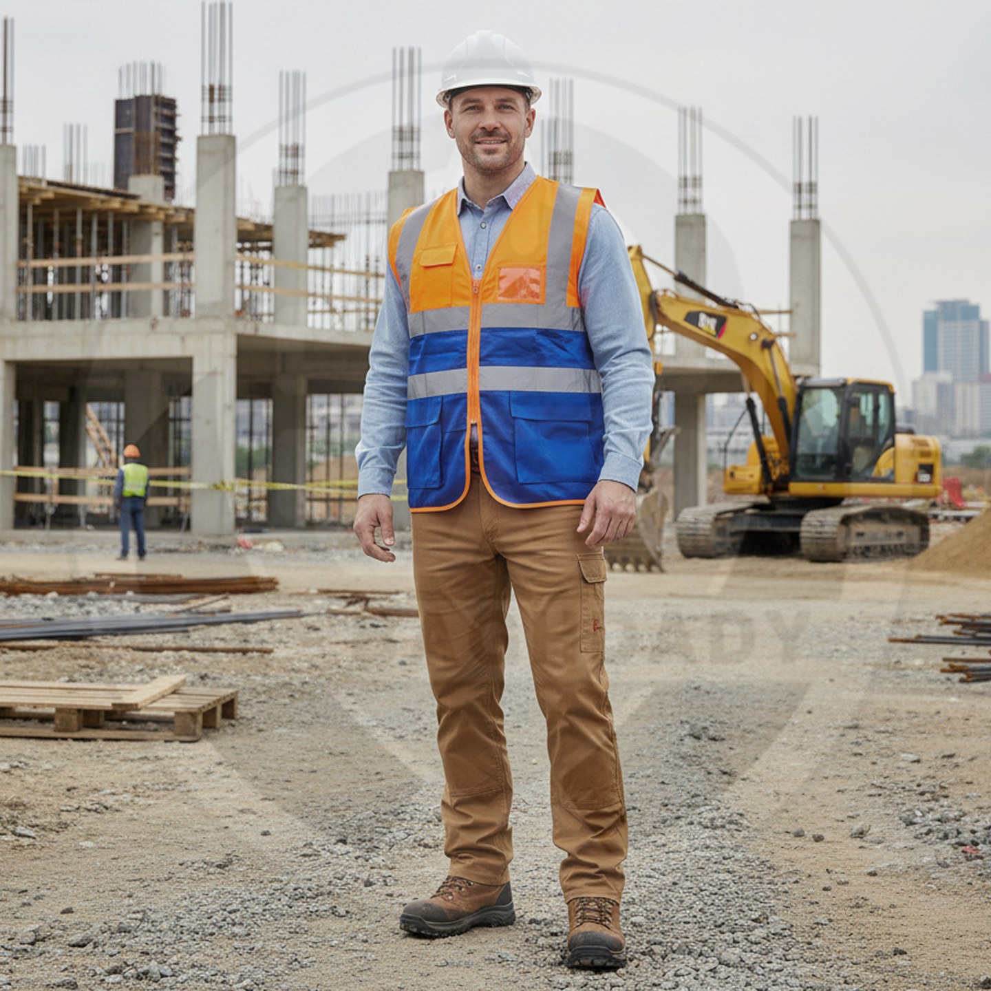 وصف المنتج : سترة سلامة ممتازة لونين ذات خامة ممتازة من البوليستر الخالص مع أشرطة تحذير عاكسة و 5 جيوب خارجية