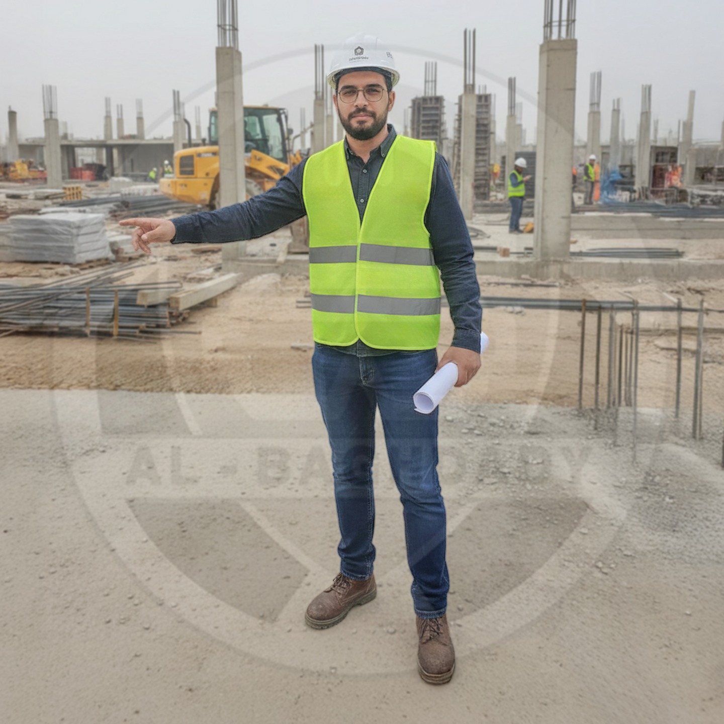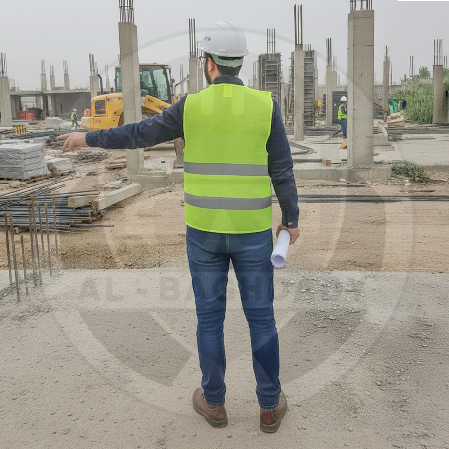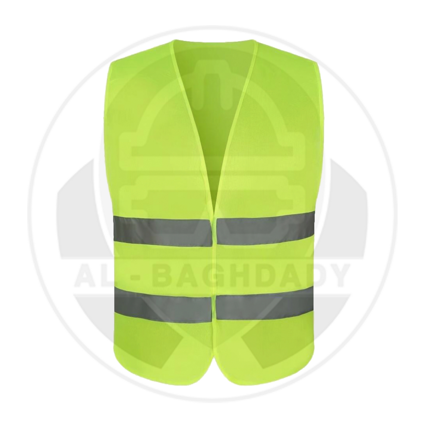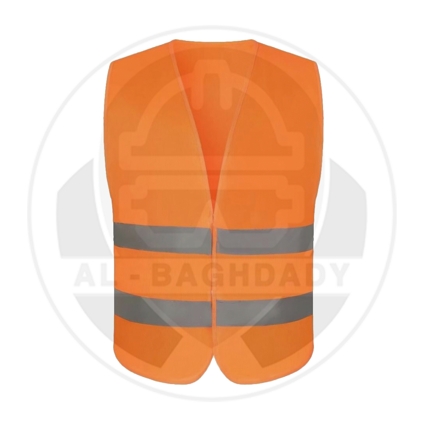 وصف المنتج : سترة سلامة لون واحد ذات خامة خفيفة من البوليستر الخالص مع أشرطة تحذير عاكسة بدون جيوب خارجية